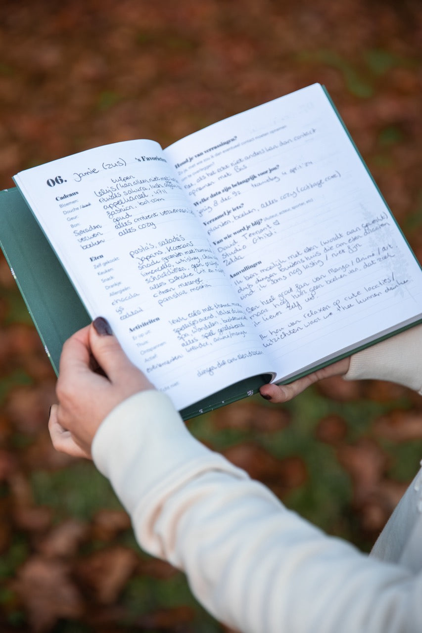 Daarom is dit favorietenboek er! Een soort vriendenboekje voor volwassenen, waarmee je precies kunt vastleggen wat iemand écht leuk vindt. Het is een handige gids vol persoonlijke voorkeuren: van favoriete snacks en activiteiten, tot bloemen die iemand mooi vindt en welk merk cadeaubon áltijd goed is. Met dit boek maak je het kiezen van een cadeau niet alleen makkelijker, maar ook veel leuker.