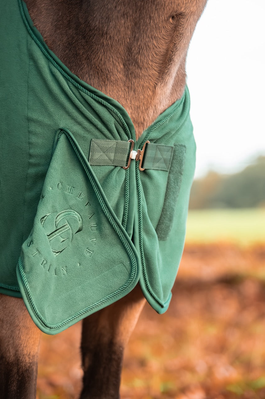 Geef je paard een luxe uitstraling met onze stijlvolle fleecedeken in de elegante kleur Deep Green. Deze hoogwaardige fleecedeken biedt niet alleen functionaliteit, maar ook een verfijnde look dankzij de prachtige details en innovatieve eigenschappen.